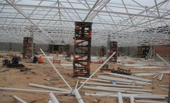5)总体晋职法:此步履多使用在周边支护以及有多点支护的网架结构,可采取平板升降机、液压千斤顶等小型机具作业泉州施工;